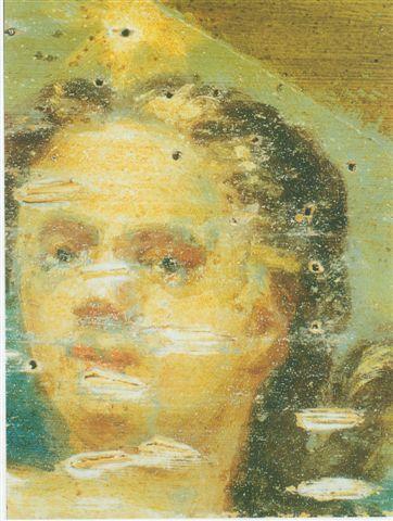 'Het houten plafond werd omstreeks 1750 beschilderd op een grijze, ruwe onderlaag,' vertelt de restaurator, ' er zijn warme tinten gebruikt. Wie de schilder is weten we nog niet maar het was beslist geen amateur. Het penseel is vlot gehanteerd.'
