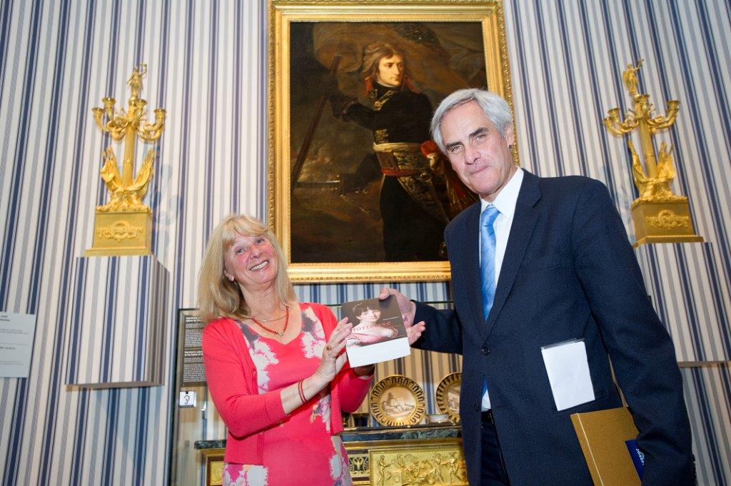 Prins Charles Bonaparte nam op 8 mei 2015 het boek 'Hortense de vergeten koningin van Holland' van Thera Coppens in ontvangst.