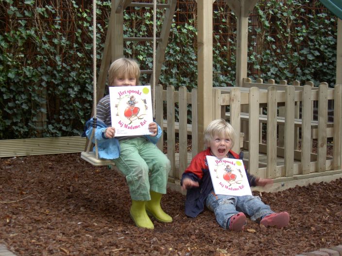 En inmiddels hebben we een tweede prentenboek gemaakt: Het spookt bij Madame Rat! Dit boek speelt zich af aan de rand van een groot bos waar een huisje staat. In dat huisje woont Madame Rat. Ze is een vreemdelinge die iedereen de stuipen op het lijf jaagt door haar passie voor muziek en het zingen van beroemde aria's. Bovendien spookt het op haar zolder! Als het stormt danst een witte schim voor haar zolderraampje op en neer.