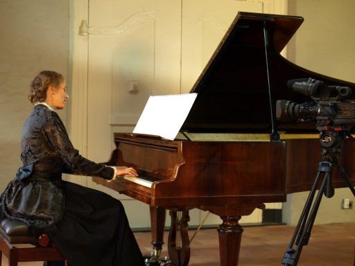 Mme Manet aan de piano door Edouard Manet. Daarnaast Paula Bär-Giese spelend op de Erard vleugel die nog door Liszt in Parijs werd bespeeld.