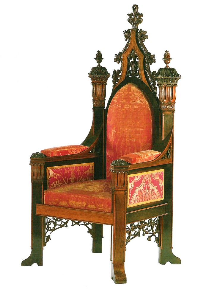 6. A.W.N.Pugin (1812-1852) ontwierp onder meer het interieur van het toenmalige Paleis Westminster. Catalogus van de tentoonstelling Willem II de koning en de kunst die in 2014 werd gehouden in Museum Dordrecht. De troon in de Ridderzaal te Den Haag is gemaakt door de grote negotische architect Pierre Cuypers (1827-1927) die de eikenhouten zetel in 1904 voor koningin Wilhelmina ontwierp naar
