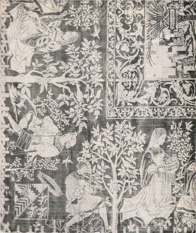 Foto: Fragment van een damastlinnen tafelkleed dat omstreeks 1531 in Vlaanderen werd geweven.