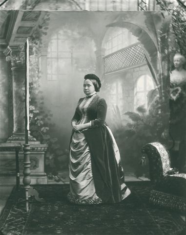 Daarna was het mijn beurt om iets te vertellen over de prachtige japon van groothertogin Sophie (1824-1897), die Cornelie me in 2009 bij een bezoek in Duitsland schonk. Al die jaren vormde de witsatijnen japon - waarvan de baleinen in het lijfje nog de zweetdroppeltjes van een hofbal leken te dragen - een bron van inspiratie voor me. Tijdens het schrijven van mijn biografie over Sophie was het of haar fantoom versierd met strikken en linten over de rugleuning van de bank lag uitgespreid. Maar nu wil ik dat anderen kunnen delen in het bekijken van de historische japon van een uitzonderlijke vrouw.